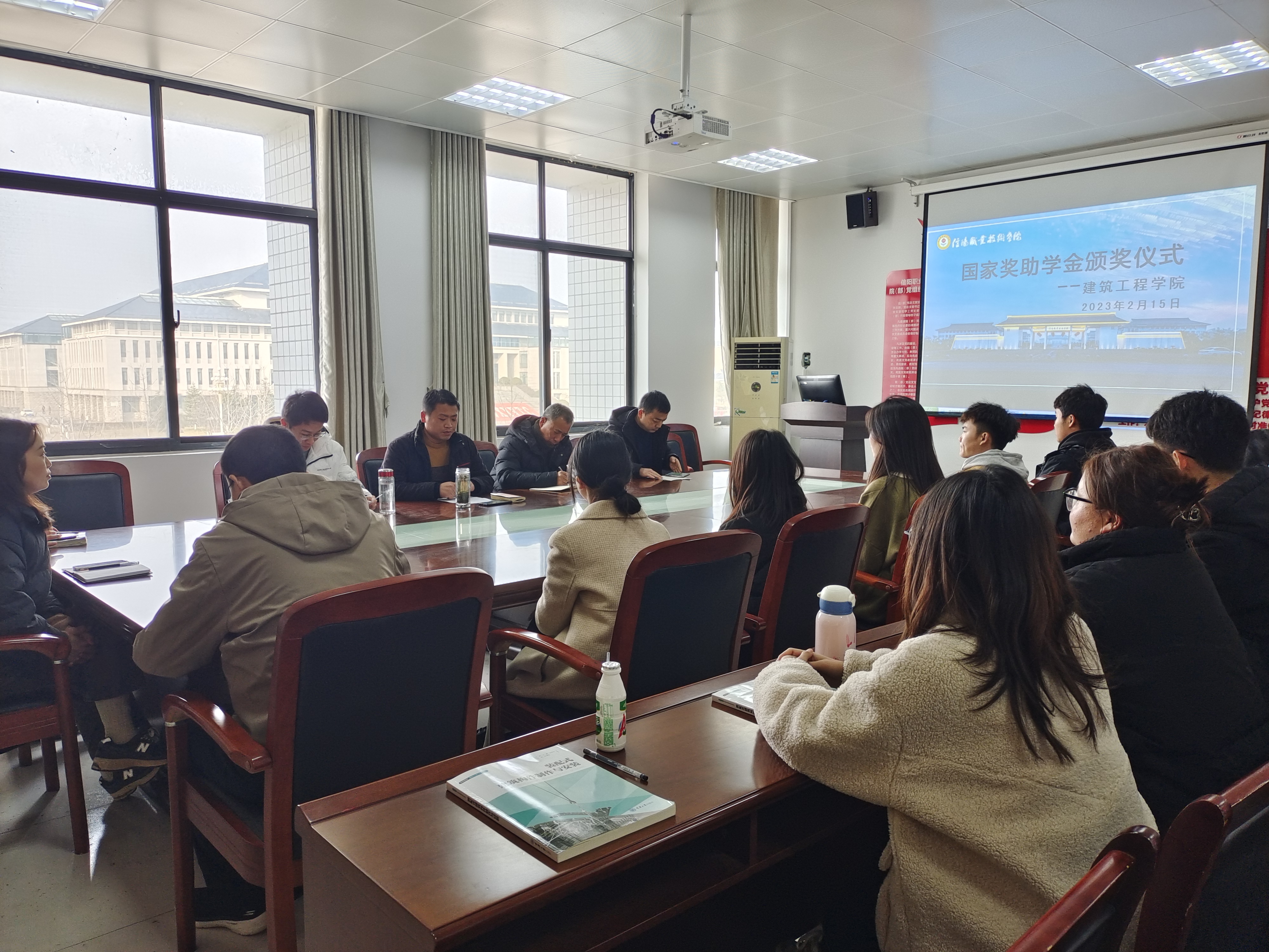 2月15日,pa集团官网入口在3013多媒体教室举行了2022年度国家奖助学金发放仪式,建工学院党总支书记孟朝晖、副院长董晶、学工办主任李何、各年级辅导员及获得国家奖助学金的部分学生代表参加。会议由资助专干陈峙主持。