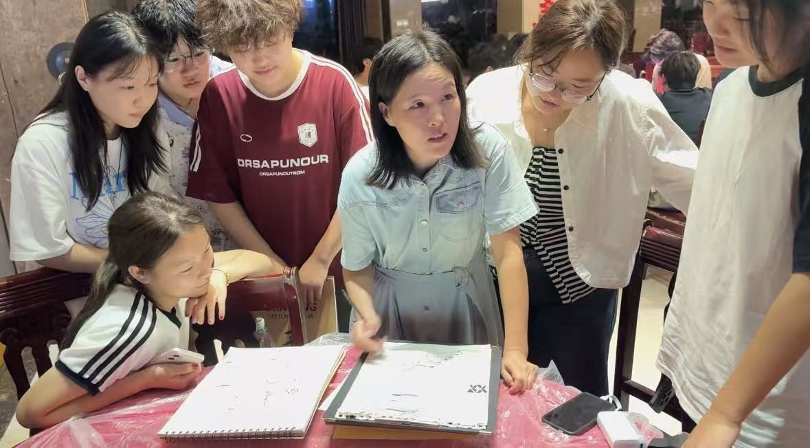 学生沉浸于传统建筑与自然景观之中,积极将课堂所学运用于实践。在教师的专业指导下,学生认真观察建筑结构、空间层次与光影变化,完成了多幅高质量写生作品。每日创作结束后,指导教师组织集中点评与专题研讨,对作品进行深入分析,助力学生在交流与反思中不断提升专业素养。
