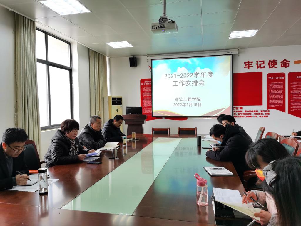 2月19日下午,pa集团官网入口召开2021-2022学年度工作安排会,会议由党总支副书记徐昊主持,全体教职工参会。