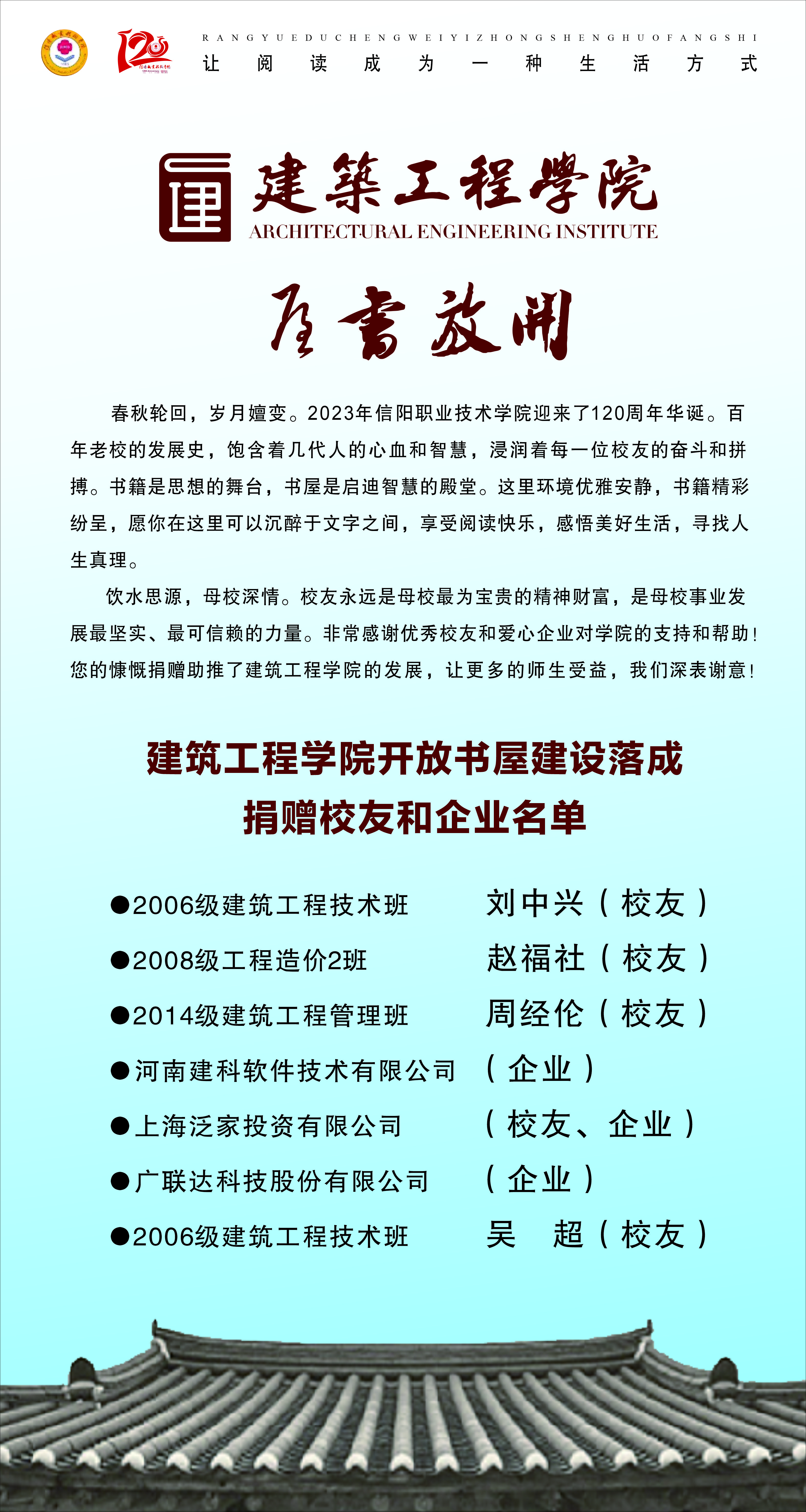 校友、企业捐建开放书屋,献礼信职百廿华诞