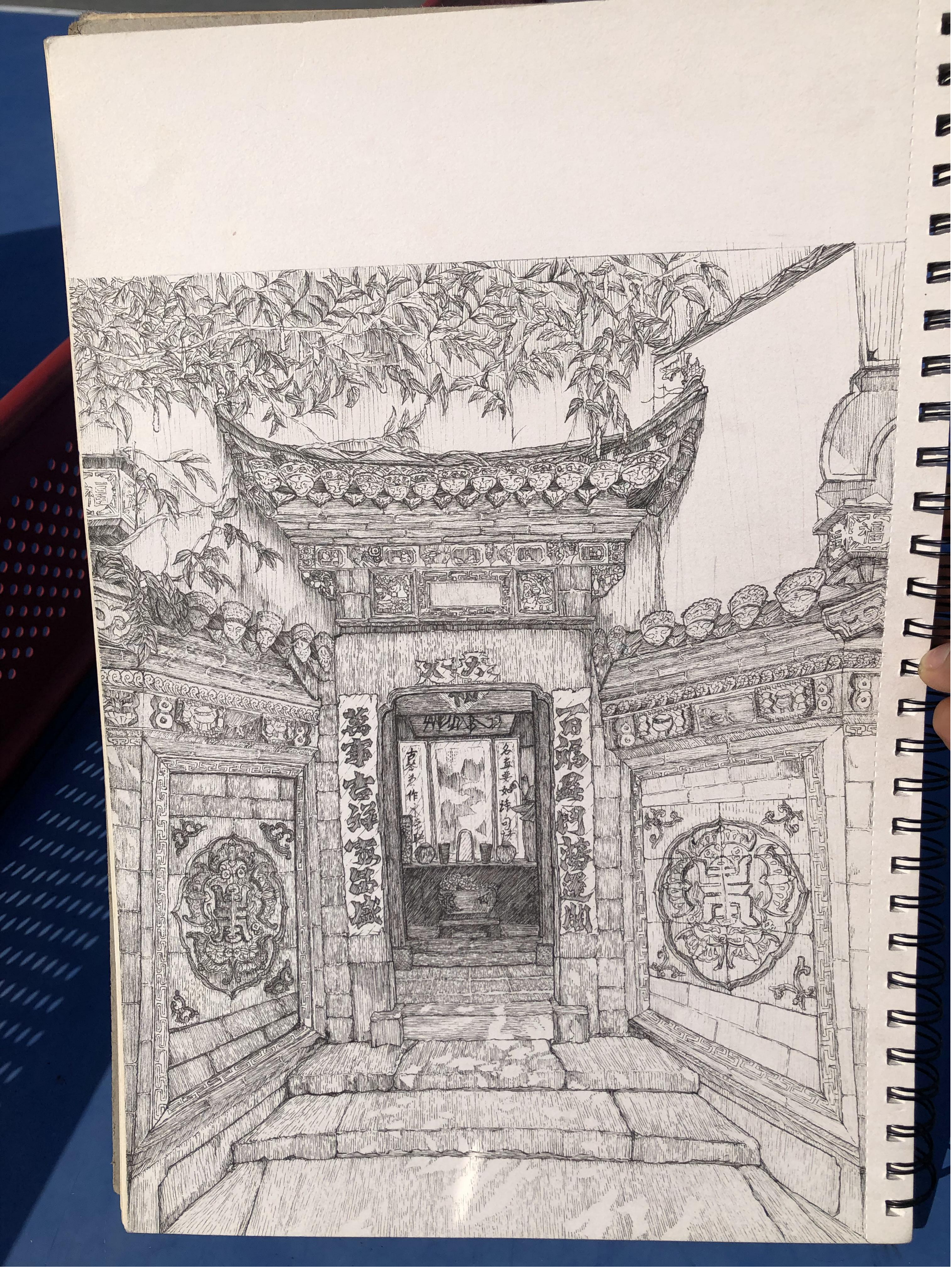 此次写生的主要内容是建筑速写,目的是使学生掌握建筑速写表现的基础知识和基本技能,具备正确表现对象的造型能力,掌握扎实的基本造型规律、法则和技巧,提高学生建筑装饰的修养和鉴赏能力,培养装饰艺术的感知和能力。规划专业学生在完成建筑速写任务的基础上,又进行了3天的古建筑测绘实践。