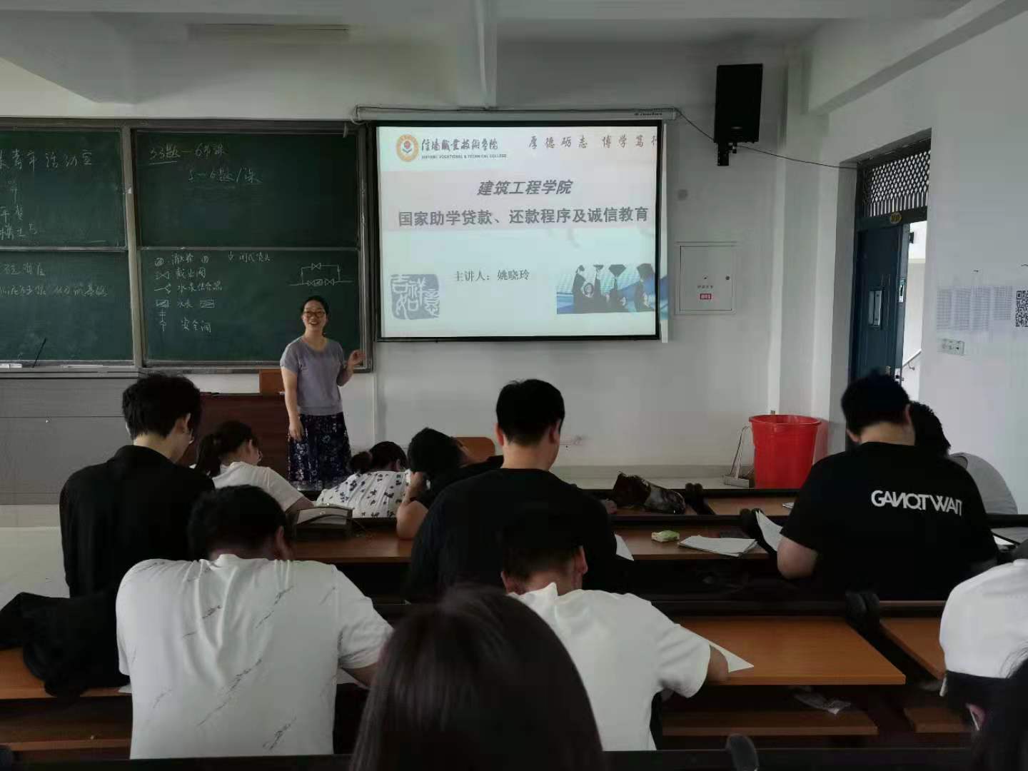召开诚信教育主题班会,面向在校生宣传大学生资助政策,通过历届大学生违约还款案例分析,向学生阐述违约的不良影响,进一步加强学生在生活、学习中的诚信意识。以班级为单位开展自由讨论,以“诚信还款”、“诚信考试”、“诚信做人”为切入点,引导学生积极发言,端正学生认识。辅导员王文娟、姚晓玲,组织毕业生开展了诚信还款主题教育,向贷款学生介绍了国家资助的相关政策,重点就学生还款的注意事项做了详细说明,为学生认真解读了贷款还款程序,鼓励学生早日还款。