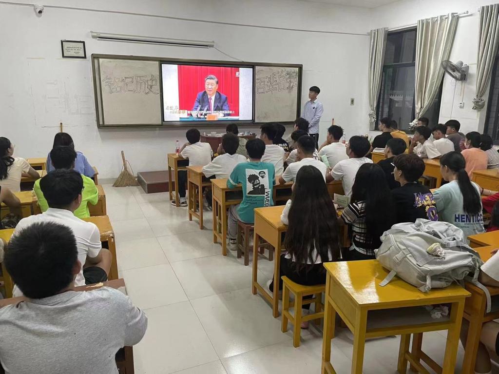 组织观看秋季开学思政第一课,向学生展示国家建设发展中取得的举世瞩目的成绩,激发学生的爱国热情,号召学生以奋斗成就梦想。