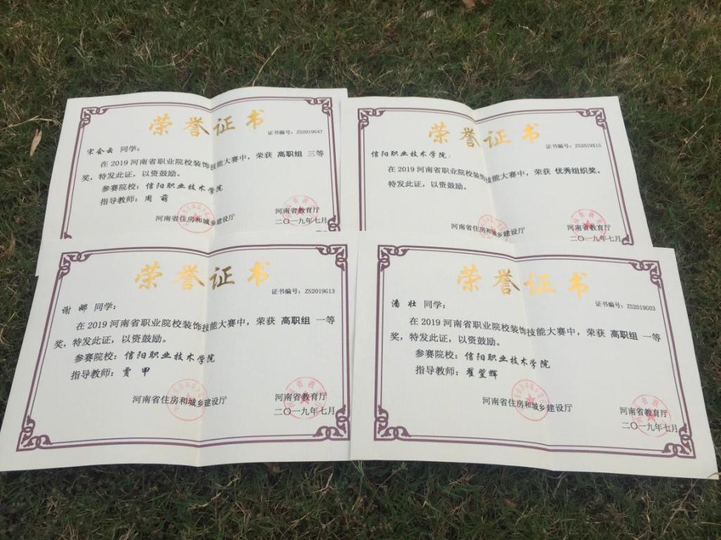 【获得荣誉】2018年河南省职业院校装饰技能大赛获高职组:一等奖两个,三等奖两个;中职组:二等奖一个。2019年全国职业技能大赛河南赛区建筑装饰技能大赛三等奖。2019年河南省职业院校装饰技能大赛获高职组:一等奖两个,三等奖一个;中职组:二等奖一个,三等奖两个。同时获河南省职业院校装饰技能大赛优秀组织奖。