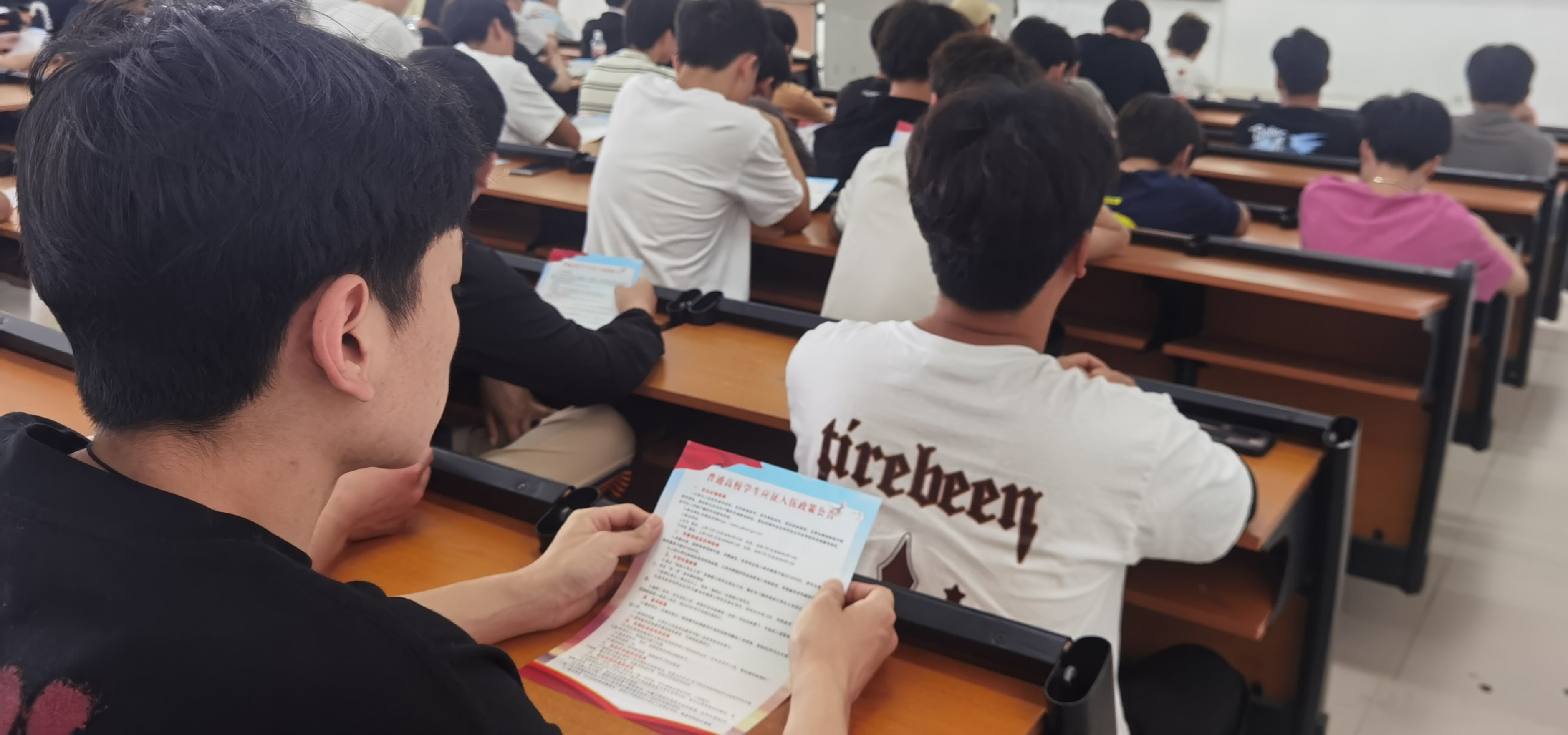 在宣讲会上,学院老师则通过具体案例,深入解读了就业政策导向和学院就业支持措施,鼓励同学们制定合理的职业规划。此外,活动现场还发放了就业政策宣传页,帮助同学们进一步了解就业创业相关信息,班级分发宣传页并组织学习,同时邀请了学生处武装部杨家升、冷申给大家讲好一堂政策大课。
