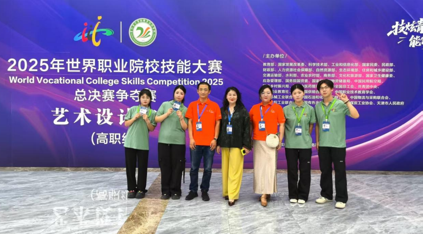 近日,2025年世界职业院校技能大赛总决赛争夺赛陆续收官,我院两支参赛队伍分别入围了高职组艺术设计赛道以及土木建筑设计与管理赛道争夺赛。其中,由翟翌辉、黎瑜婷两位老师指导,梁晶、熊壮、孟莉锦、袁家琪四位同学组成的代表队,凭借精湛的技艺和卓越的团队协作能力,获得2025年世界职业院校技能大赛总决赛争夺赛艺术设计赛道铜奖。