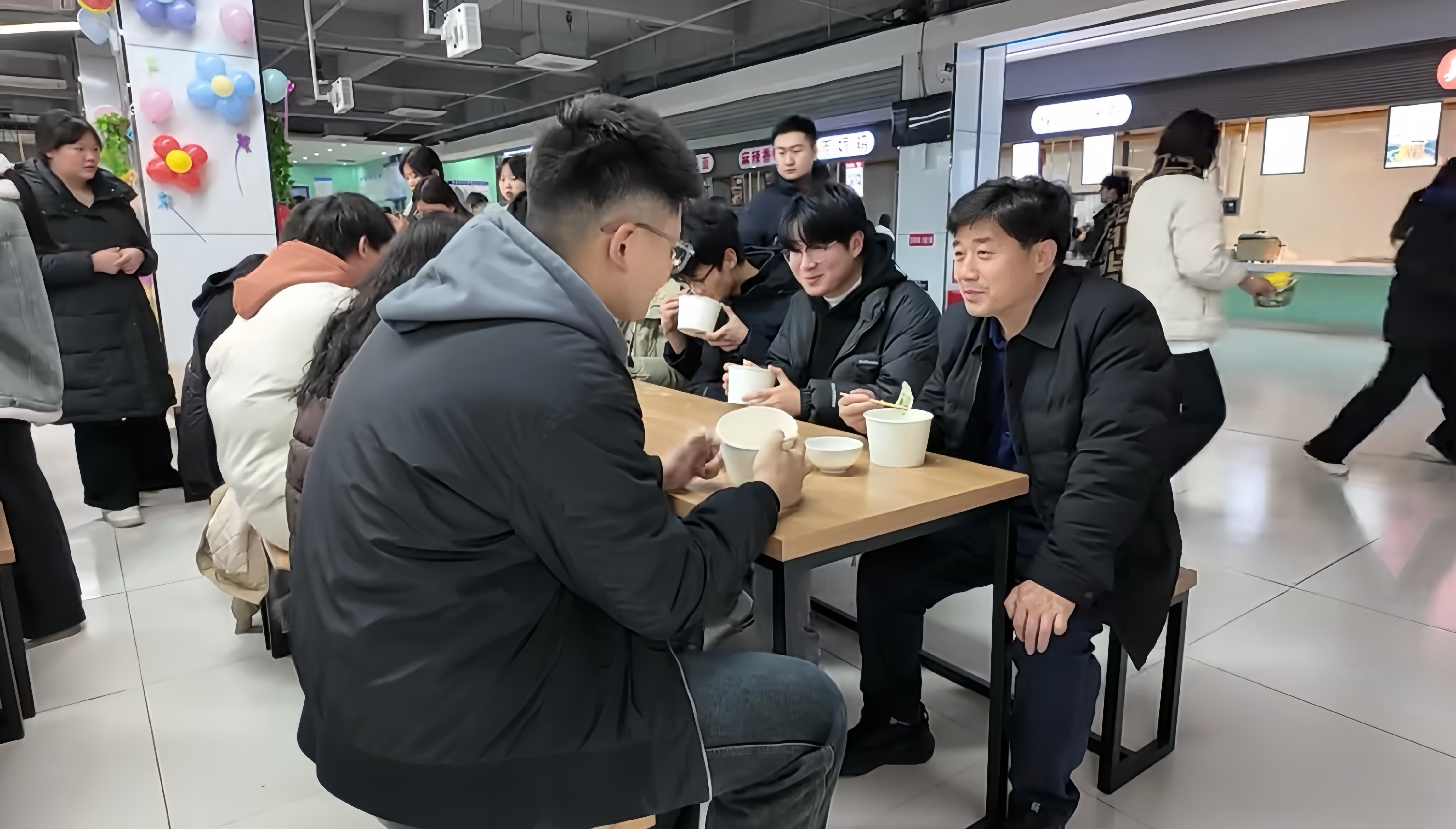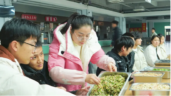 学生在老师的带领下有序入场,一时间,餐厅内人头攒动、热闹非凡。分发饺子皮、分配馅料,一切都在紧锣密鼓地有序进行中,师生们围坐在一起,在欢声笑语中度过了包饺子的温情时刻,轻松和谐的氛围如春风拂面驱散了冬日的寒冷。