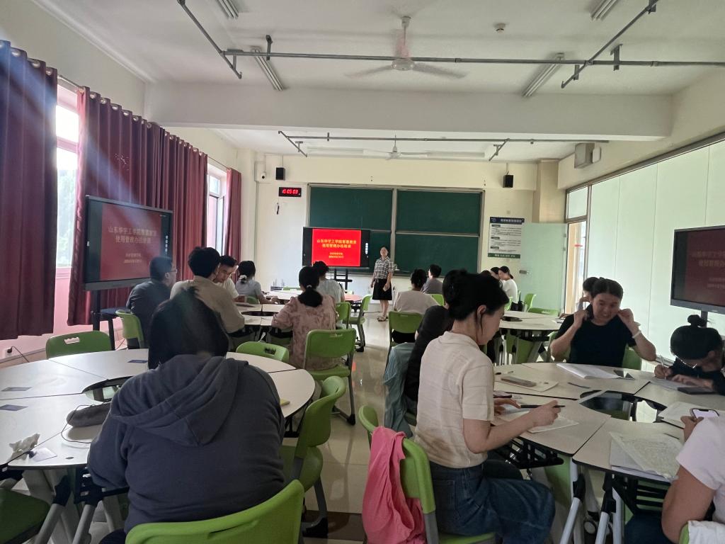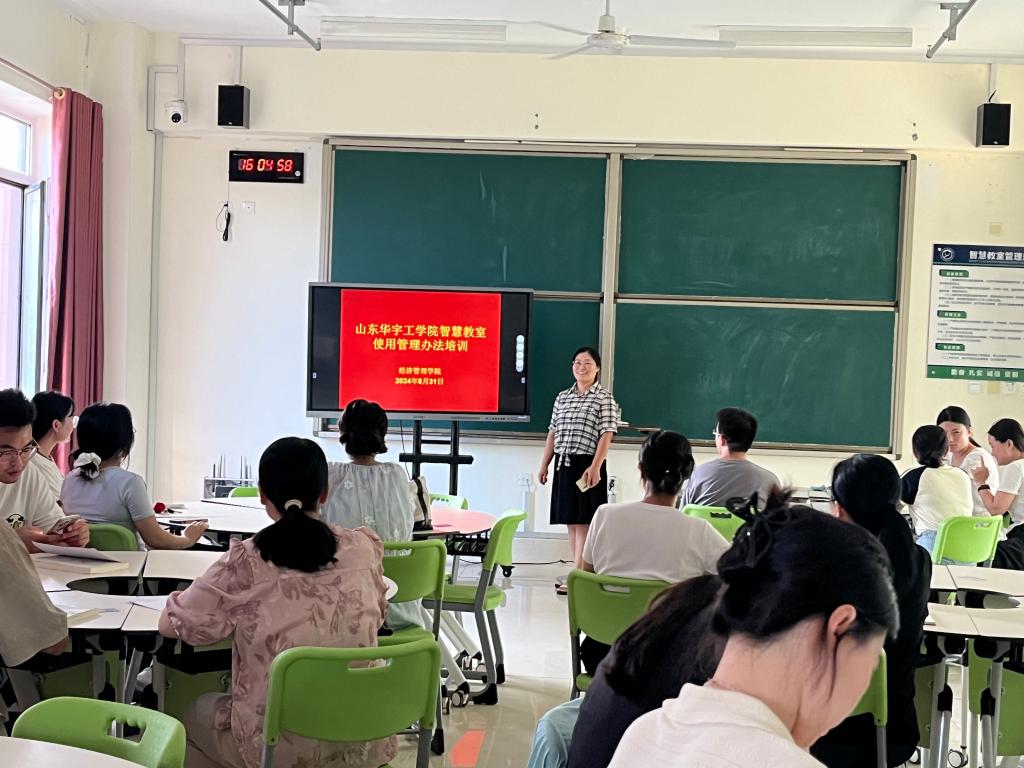 为切实加强智慧教室的使用与管理,充分发挥智慧教室在课堂教学改革和提高课堂教学质量等方面的作用,保证智慧教室使用效果,更好地服务师生,根据学校《山东华宇工学院智慧教室使用管理办法(修订)》,8月31日下午,开云官网商务英语教研室副主任刘娟老师为在21#310为新入职教师开展智慧教室使用管理规则培训。
