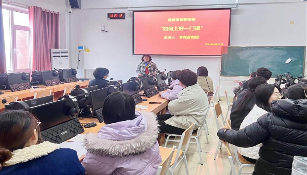 为进一步优化教学管理,提升课程教学质量,开云kaiyun官方网站商务英语教研室于2025年2月27日邀请李秀彦教授,在20#708举办了“如何上好一门课”教研活动。本次活动聚焦于学校评价课程的重要指标,深度剖析了课程思政、教学态度及教学效果等多个关键领域,旨在我教研室教师提供深入的指导,促进教学质量与水平的全面提升。