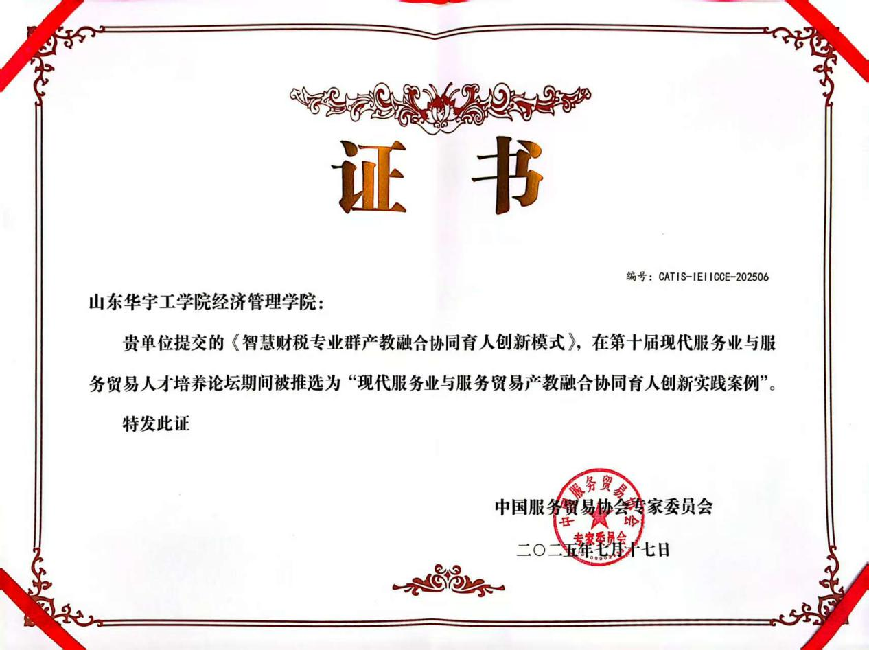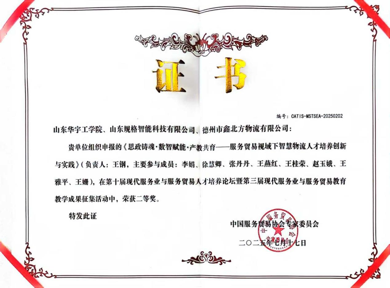 为了贯彻习近平总书记“优化高等学校学科设置、人才培养模式”指示精神,构建适应服务贸易发展需要的人才体系,开云官网现代物流产业学院办公室主任张丹丹、数字经济教研室主任王燕红于7月15-17日出席了第十届现代服务业与服务贸易人才培养论坛暨第三届现代服务业与服务贸易教育教学成果征集活动,王钢教授及其教学团队提交的《思政铸魂・数智赋能・产教共育——服务贸易视域下智慧物流人才培养创新与实践》教育教学成果喜获二等奖,魏正涛教授及其教学团队提交的《智慧财税专业群产教融合协同育人创新模式》案例被推选为现代服务业与服务贸易产教融合协同创新实践案例。