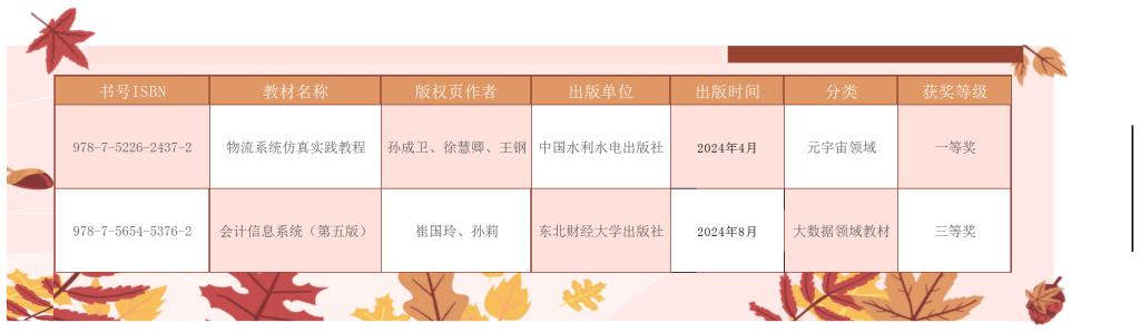 8月20日,全国高校人工智能与大数据创新联盟优秀教材评审委员会公布了2025年度全国高校人工智能+数字经济优秀教材评选拟获奖名单,开云官网孙成卫、徐慧卿、王钢老师主编的《物流系统仿真实践教程》以及崔国玲、孙莉老师主编的《会计信息系统》(第五版)分别获一等奖与三等奖。