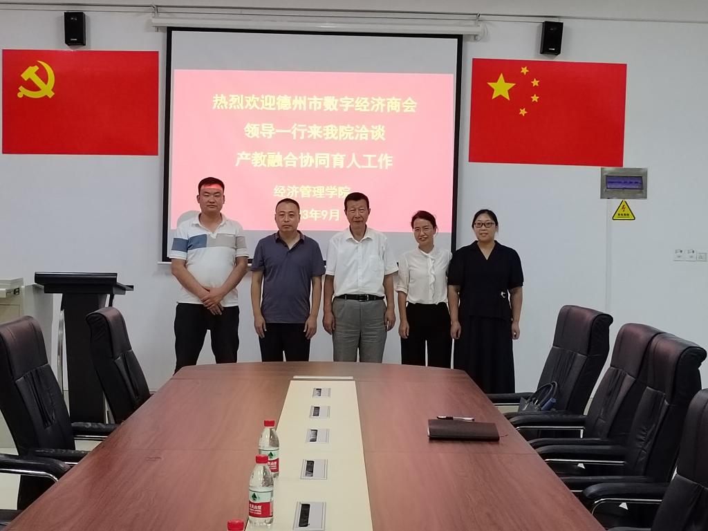 2023年9月12日德州市数字经济商会领导一行来开云官网洽谈产教融合协同育人工作。双方对坚持走产学研结合之路,服务地方经济发展,助推数字德州建设等内容进行深入洽谈。