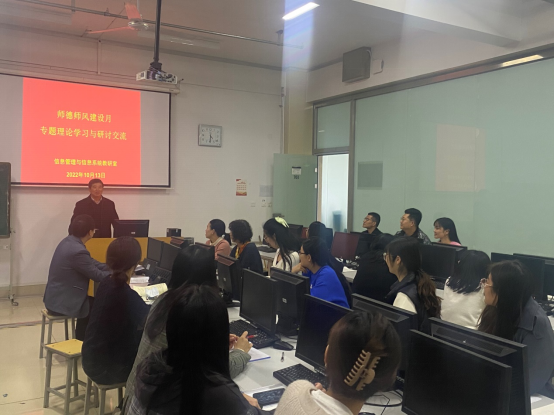 教师是立教之本,师德是兴教之魂。为进一步提升教研室全体教师师德素养,塑造良好师德形象,增强教师的荣誉感、责任感和使命感,根据《开云kaiyun官方网站2022-2023学年第一学期“师德师风建设月”活动方案》工作安排,10月13日下午,信息管理与信息系统教研室开展了“师德师风建设月”专题活动。