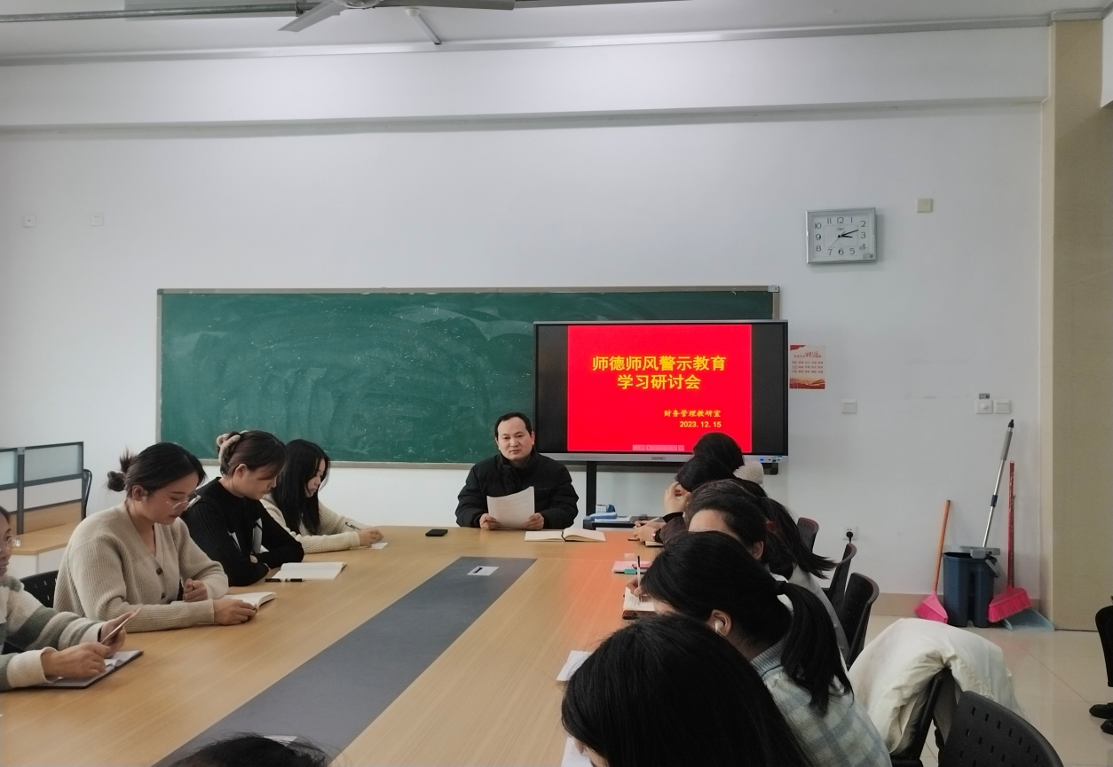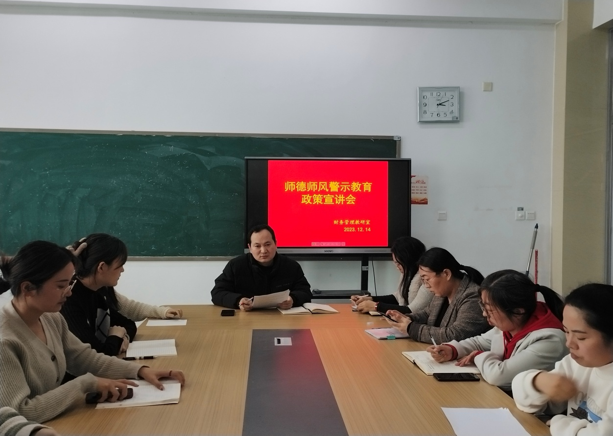 2023年12月14日与15日下午,财务管理教研室全体教师在20号楼718开展了关于师德师风的警示教育活动。本次活动旨在提高教师的职业道德水平,树立良好的师德师风,严防师德失范行为发生,为培养德智体美全面发展的社会主义建设者和接班人提供有力保障。