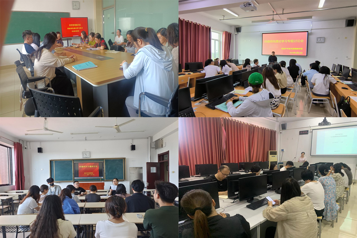 各科室(中心)结合本部门教师自主学习情况,陆续开展本部门师德师风专题理论学习研讨会活动,截止活动结束,各科室(中心)共组织学习研讨会共计18场,参会共计500余人次,每位教师参会交流达2次及以上。此次活动以科室(中心)为单位结合本部门情况自行组织,激发了全体教师交流研讨的积极性,保障了集中学习效果,对于持续推进教师师德师风理论提升,进一步提升学院师德师风建设具有重要意义。