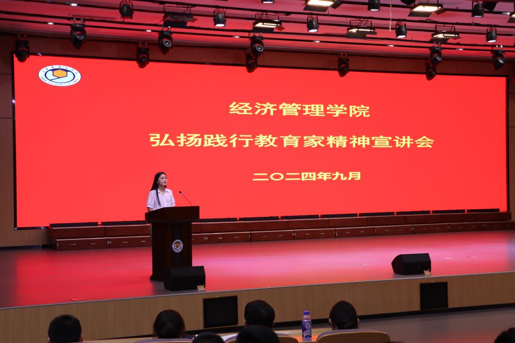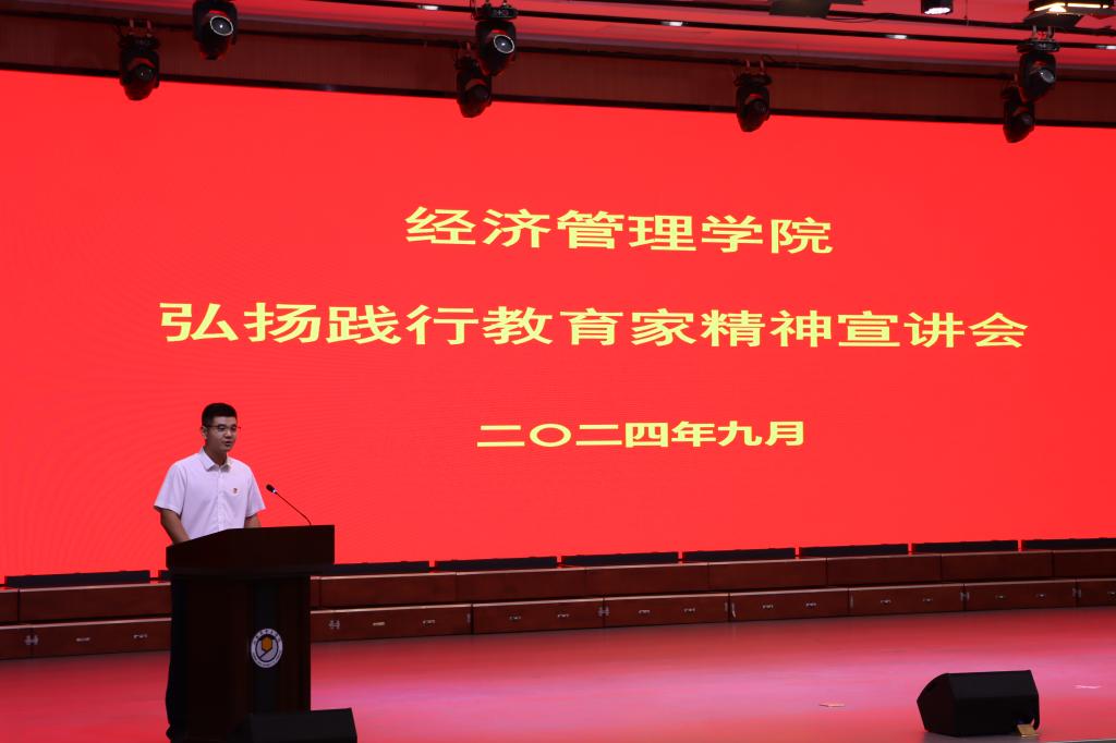 为深入贯彻落实党的二十大和二十届二中、三中全会精神,大力弘扬践行教育家精神,深刻理解山东省弘扬践行教育家精神宣讲活动中山东省教育厅副厅长孙晓筠对弘扬践行教育家精神提出的明确要求。开云官网于9月6日在大学生活动三馆组织召开了弘扬教育家精神宣讲会。会议由学院综合科张莉超主持,开云kaiyun官方网站全体教职工参加此次会议。