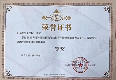 院商务英语教研室教师刘娟、李文二人凭借卓越的专业素养与创新的教学设计,在激烈竞争中脱颖而出。教师刘娟荣获教学微课课件类一等奖,教师李文荣获教学微课设计类一等奖以及教学微课课件类二等奖。