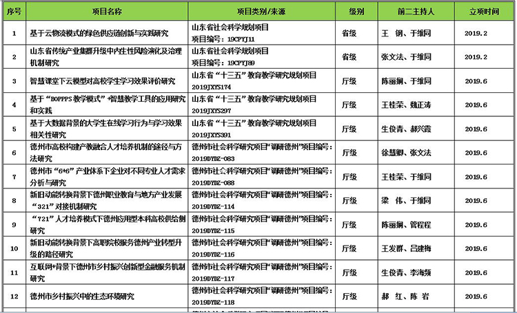 开云kaiyun官方网站2019年立项的省、厅(市)级以上项目