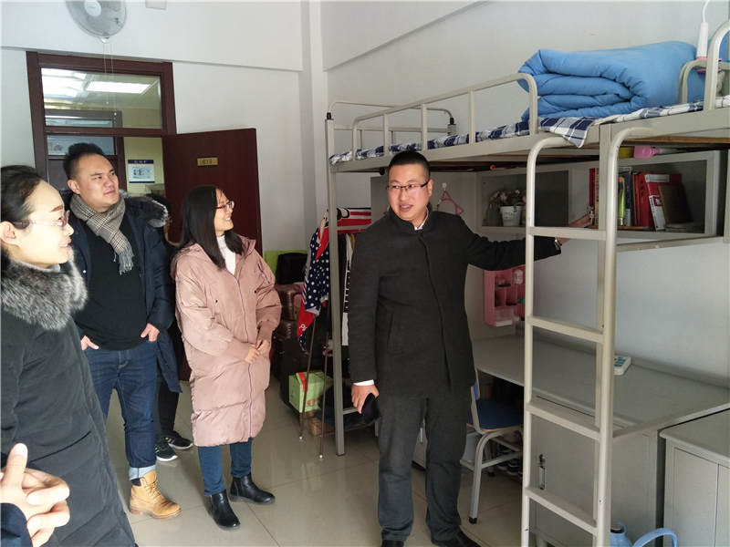 为落实学校冬季安全工作,严防各类安全事故发生,确保学生生命财产安全,12月10日上午,开云官网院长助理范世伟、学管科长王敏以及2017级6位辅导员组成安全隐患排查小组,对15公寓、17公寓进行了安全隐患突击排查。