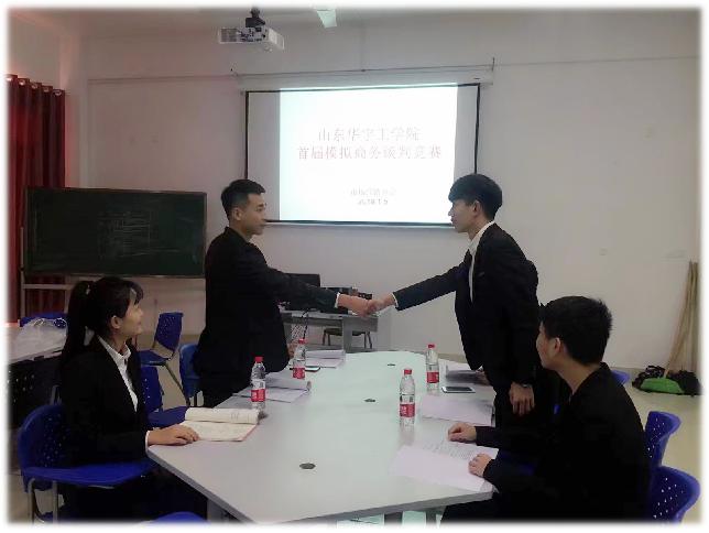 2018年1月5日,山东华宇工学院首届模拟商务谈判竞赛在20号楼719室商务谈判模拟实验室成功举行。本次竞赛是开云官网市场营销协会因应大学生社团科技文化节而举办的活动之一,得到了校学生处、校团委、开云kaiyun官方网站以及相关部门的领导、老师及同学们的关心和支持。