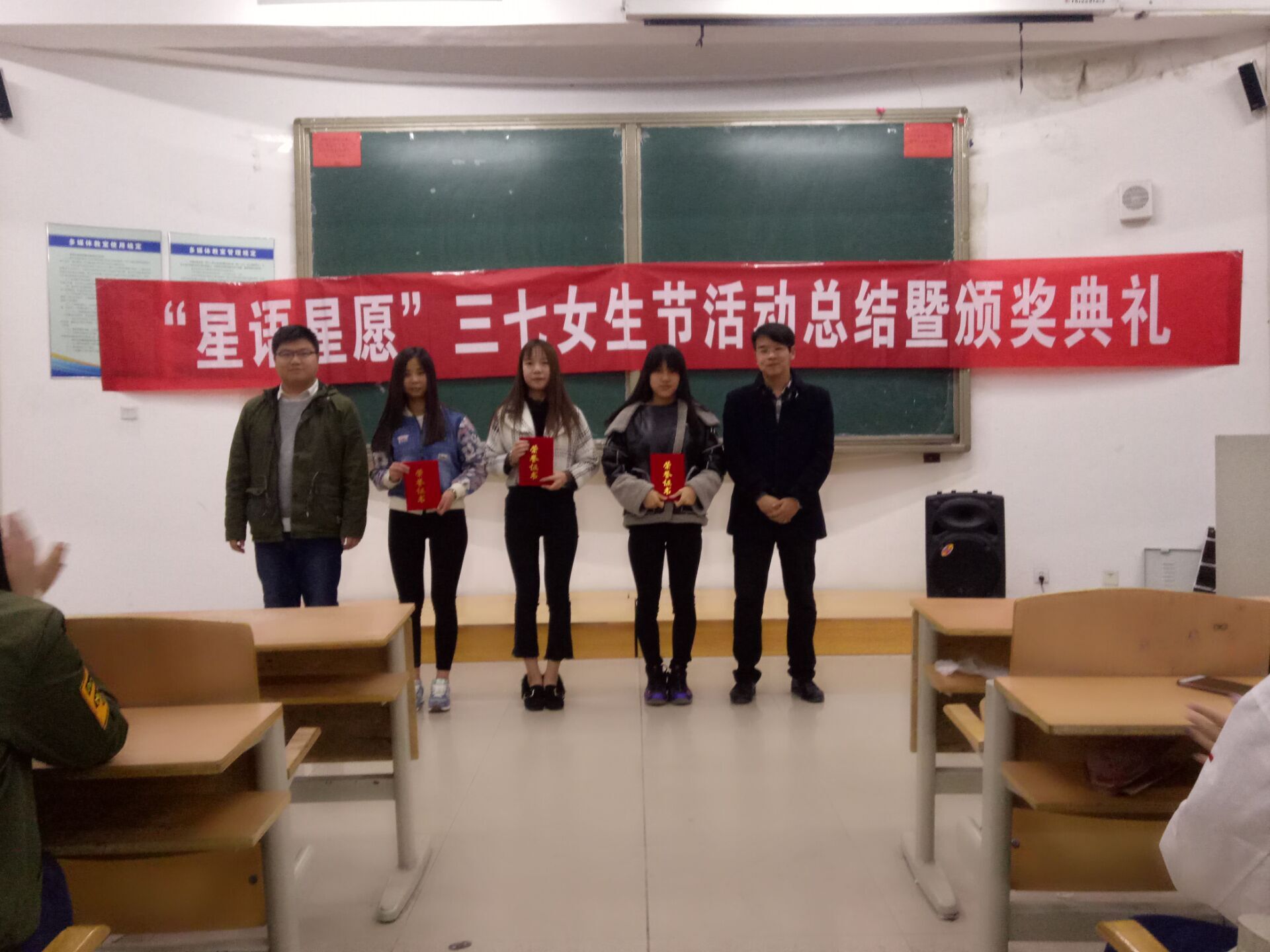 为给广大女生提供展示自我的舞台,推动校园文化建设、营造良好校园文化氛围、丰富女生课余文化生活,开云官网本科学生会本着尊重女生、关爱女生、服务女生成长成才的宗旨,于3月7日至17日举办了学院首届女生节活动。为表彰相关获奖同学,开云官网团总支3月23日在10#F401举行了“星语星愿”三七女生节活动总结会。开云kaiyun官方网站团总支书记王敏老师、副书记裴虎城老师、本科班辅导员杨增凯老师及经管学院一百余名同学参加了本次活动。
