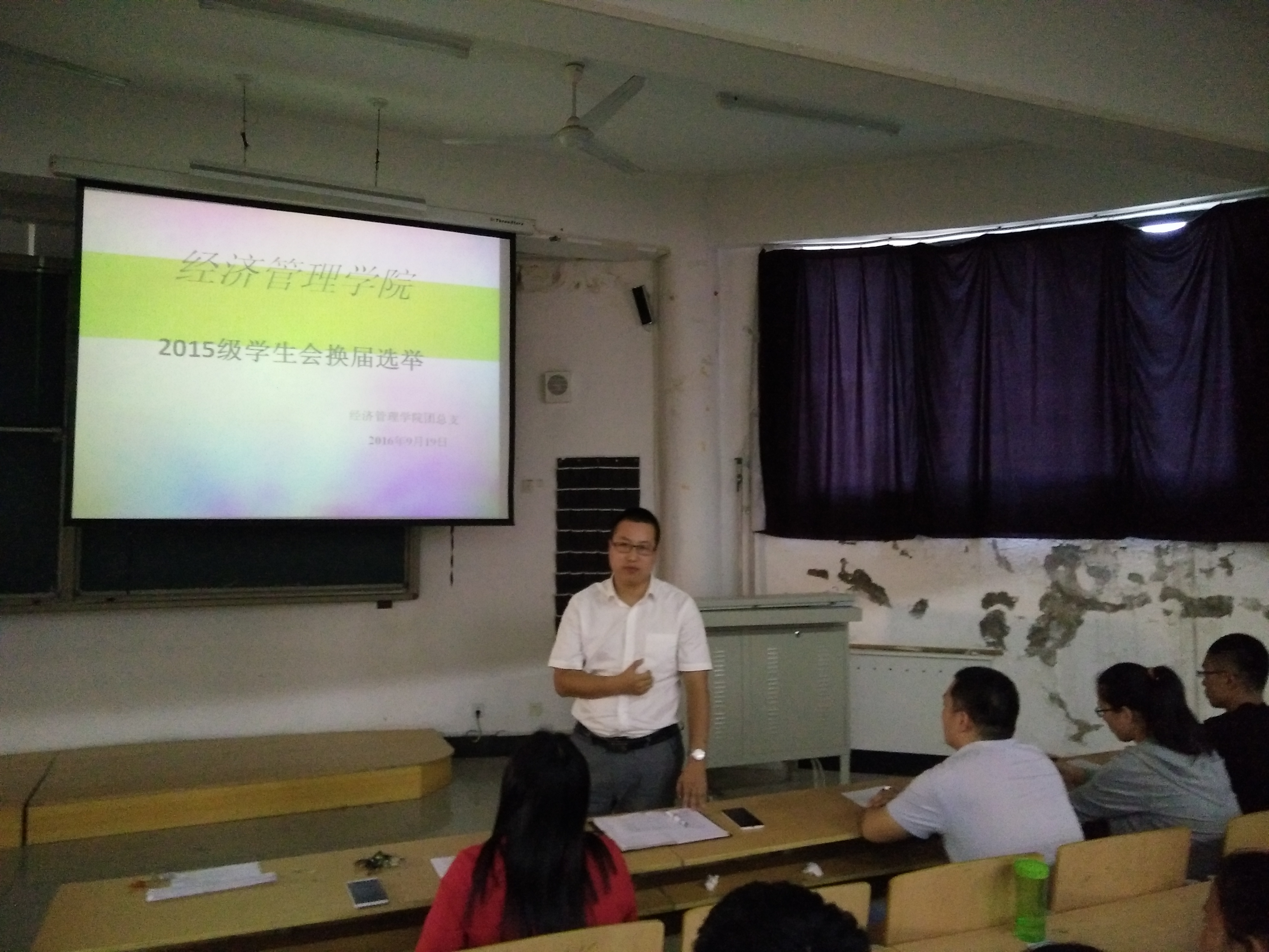 随后,竞选开始,参选新一届主席团成员和部长的同学从个人经历、组织管理能力、工作开展规划等方面逐一进行了竞选演讲,并回答了现场评委的提问。并于9月23日晚参加了学生会换届笔试。