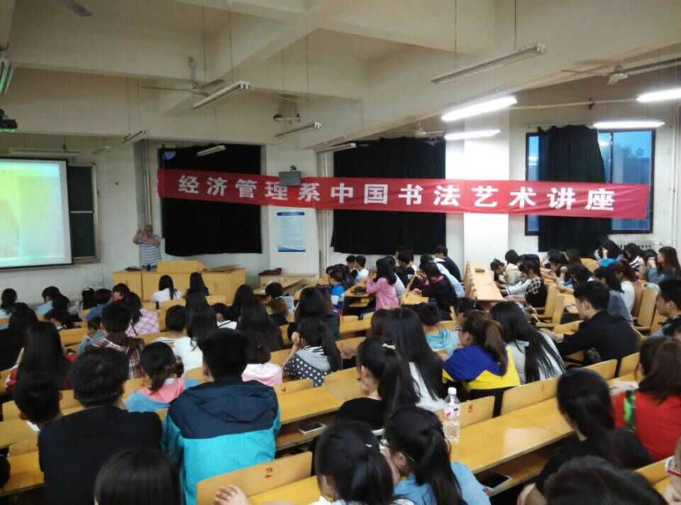 5月7日晚19时,我系在6号楼101举行,《中国书法艺术》专题讲座,由经济管理系李虎君教授主讲。经济管理系主任助理范世伟,部分教师及学生代表聆听了讲座。