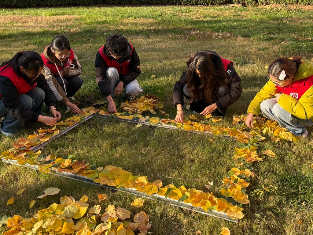 活动现场,志愿者与社区居民率先投入落叶相框制作环节。大家围坐在一起,手持金黄秋叶相互交流创作思路,在默契协作中,一个承载着秋日韵味与邻里温情的打卡相框渐渐成型。随后,大家移步社区草坪,共同开启“我爱长河”主题落叶造型创作。一片片落叶在大家的巧手下错落排布,“I love 长河”的造型缓缓呈现。造型完成后,居民们手持亲手制作的落叶相框,在创意造型前有序拍照打卡,定格协作的快乐与秋日的美好,欢声笑语中,邻里情谊愈发浓厚,文明新风在实践互动中悄然传递。