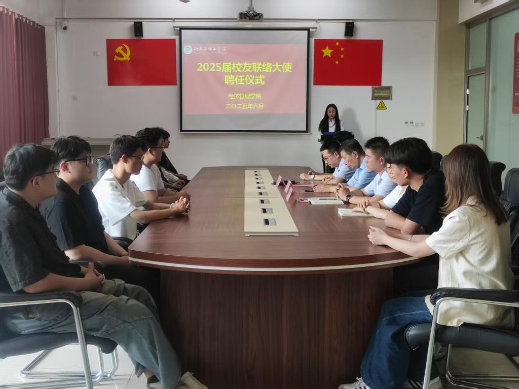 为深化校友与母校之间的情感纽带,充分激发校友在学院建设发展中的桥梁纽带作用,有力推动学院在人才培养、科学研究和社会服务等领域的高质量发展,6月17日我院在20#712会议室举行2025届校友联络大使聘任仪式。学院院长于维同、党总支书记兼副院长范世伟、学生管理科科长、团总支书记及20位2025届校友联络大使代表参加了此次会议。