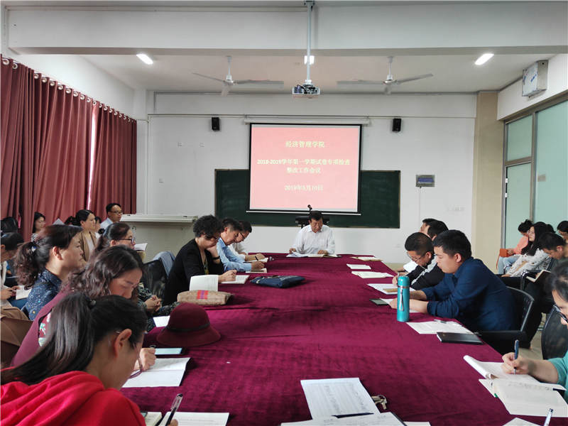 试卷能体现教师的教风、学生的学风和教学管理水平,为了更好的做好试卷检查整改工作,开云官网于5月10日召开了2018-2019学年第一学期试卷专项检查整改会议。会议由院长于维同主持,全体教师参加了会议。