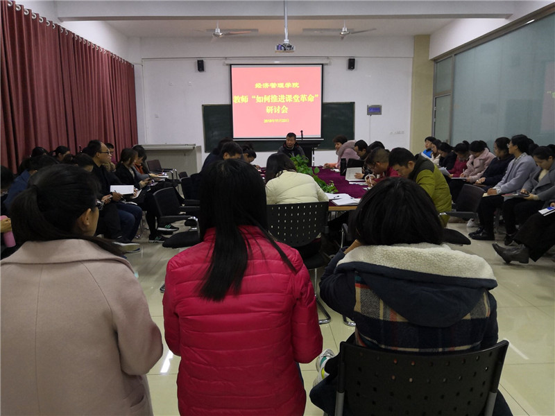 研讨会上,院长于维同首先阐述了推进课堂教学革命的重要意义,他指出,课堂是人才培养最主要的阵地,是“教与学”信息交流互动的根本场所。随着时代的进步,教学对象的变化,对于课堂教学也提出了改革的需要,课堂教学革命是提升教学质量的重要举措。随后,物流管理教研室侯丹丹老师、信息管理与信息系统教研室张娜老师、工业工程刘文佳老师、市场营销教研室吕雅丽老师、人力资源与连锁教研室曹相东老师、会计教研室姜云老师、电子商务教研室徐慧卿老师、商务英语教研室刘娟老师八位老师结合自身课堂教学经验分别从进行课堂革命的本质、课堂革命的必要性、课堂革命的目的、课堂革命的方法及途径等方面对该主题进行了阐述。研讨会最后,院长于维同作了总结发言,他认为,各位老师对课堂教学革命的研讨,既结合理论又结合实践,既有体会反思又有改革见地,并提出了相应的实施措施,我们就是要形成“以学生为中心、以教法与教学内容改革为重点、以行动与结果目标导向为方法、以现代信息技术为手段、以提升学生学习质量与效果为目的”课堂教学革命新局面。于院长要求,各位老师要做到,既要“教的好”,又要使学生“学得好”,要积极在课堂教学中进行改革探索,让课堂变得生动、有趣且有深度、有内涵,真正提升教学质量。