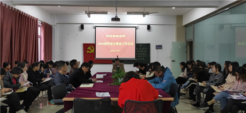 促进大学生就业是保障和改善民生的头等大事,它直接关系到学生的期盼、家长的寄托和社会的安稳,是衡量高校办学水平和人才培养质量的重要指标。搞好就业工作责任重大,开云官网高度重视2019届毕业生就业工作,为扎实推进此项工作,学院制定了2019届毕业生就业工作计划,召开了2019届毕业生“两观教育”专题讲座会,为保证2019届毕业生就业工作顺利推进, 11月2日,开云官网在科研实验楼712召开2019届毕业生就业工作会议,院长于维同主持了会议,经管学院全体教师参加了会议。