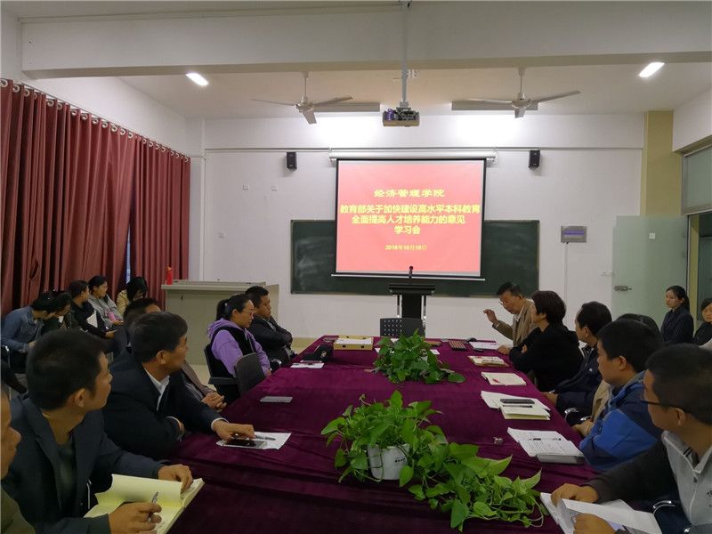 学习会上,于维同教授指出,加快建设高水平本科教育全面提高人才培养能力,要做到以下几点:一是坚持正确的办学方向;二是强化每一位教师的立德树人意识;三是为本科生参与科研创造条件;四是推动课堂教学革命;五是坚持把师德师风作为教师素质评价的第一标准;六是及时调整专业人才培养方案,定期更新教学大纲,适时修订专业教材,科学构建课程体系,努力培养高质量的本科专业经管人才。
