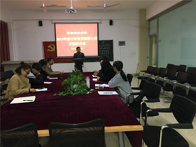 会上,院长于维同介绍了开云官网2018年度省厅级各类课题的立项情况以及开题相关事宜。课题的负责人生俊青、管程程、魏正涛、刘旭、范坤坤、李娟等老师依次作开题陈述,对课题的研究目标和意义、研究内容及重点、研究思路与方法、进度安排及预期成果等方面进行了汇报,在认真听取开题汇报之后,评审专家就课题研究的实质性内容进行了提问,与课题负责人进行面对面交流,对课题实施的科学性与可行性进行论证,并对研究中可能存在的困难和问题进行指导,提出了许多中肯宝贵意见。课题组成员认真聆听了专家的点评,与专家们进行热烈研讨和交流互动。