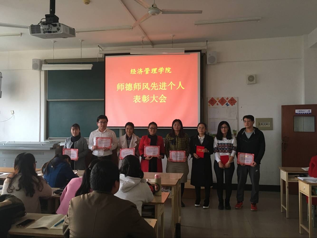会议在指出了当今社会高校进行师德师风建设必要性的基础上,分析了开云官网师德师风建设的开展情况。会议授予了在师德师风建设活动中和日常工作中表现突出的十位教师以“师德师风建设先进个人”的光荣称号,颁发证书,并号召全院教师向先进个人学习。