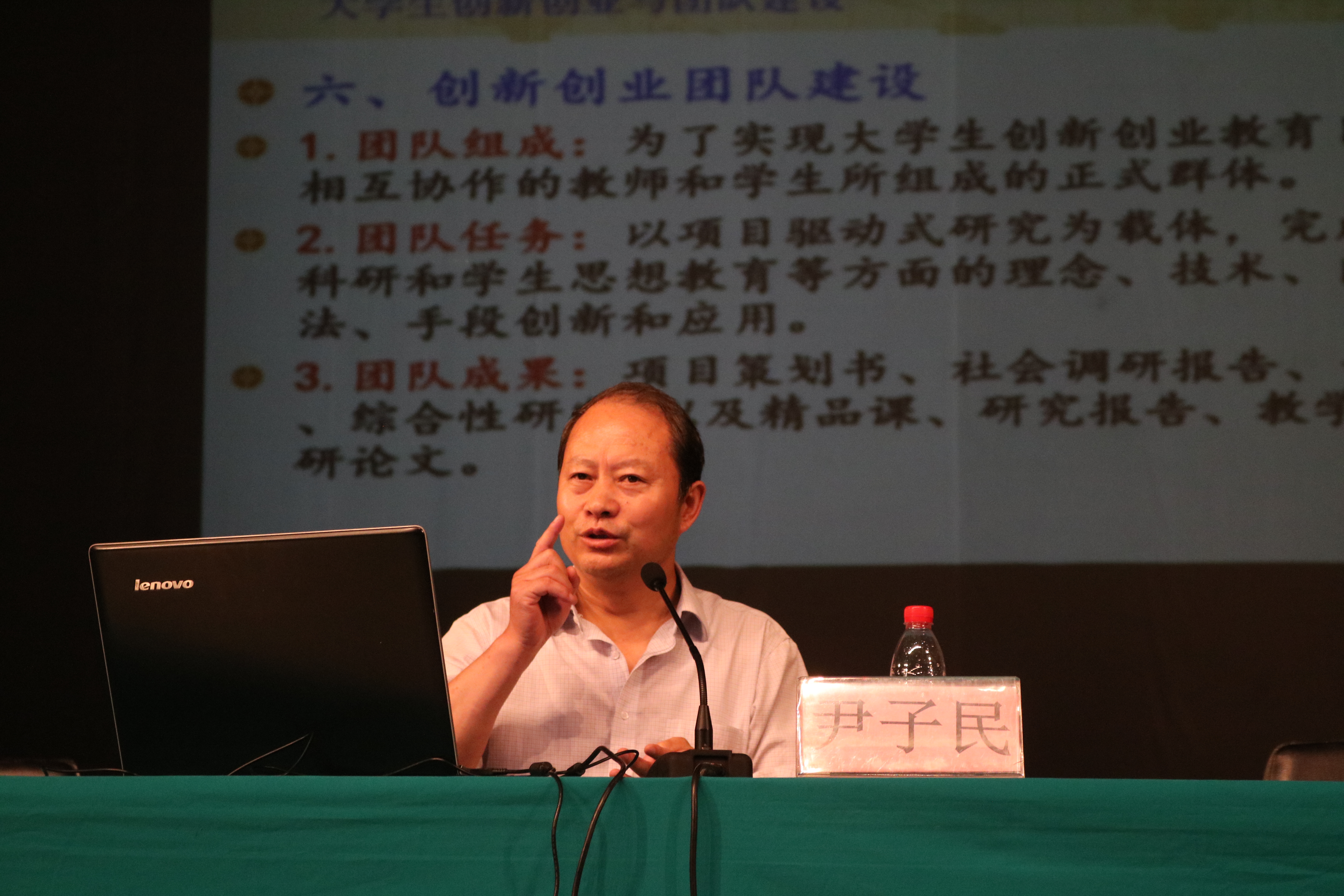 报告会开始前,于维同院长首先对尹子民教授的到来表示热烈的欢迎,并对其研究领域和研究成果作了简要的介绍。报告会中,尹子民教授讲解了在“互联网+”时代背景下大学生创新创业的发展特点、发展机遇和发展方向以及团队的建设。尹子民教授诙谐易懂的语言,深入浅出的问题分析,引起与会者的阵阵掌声,与在场师生互动热烈。