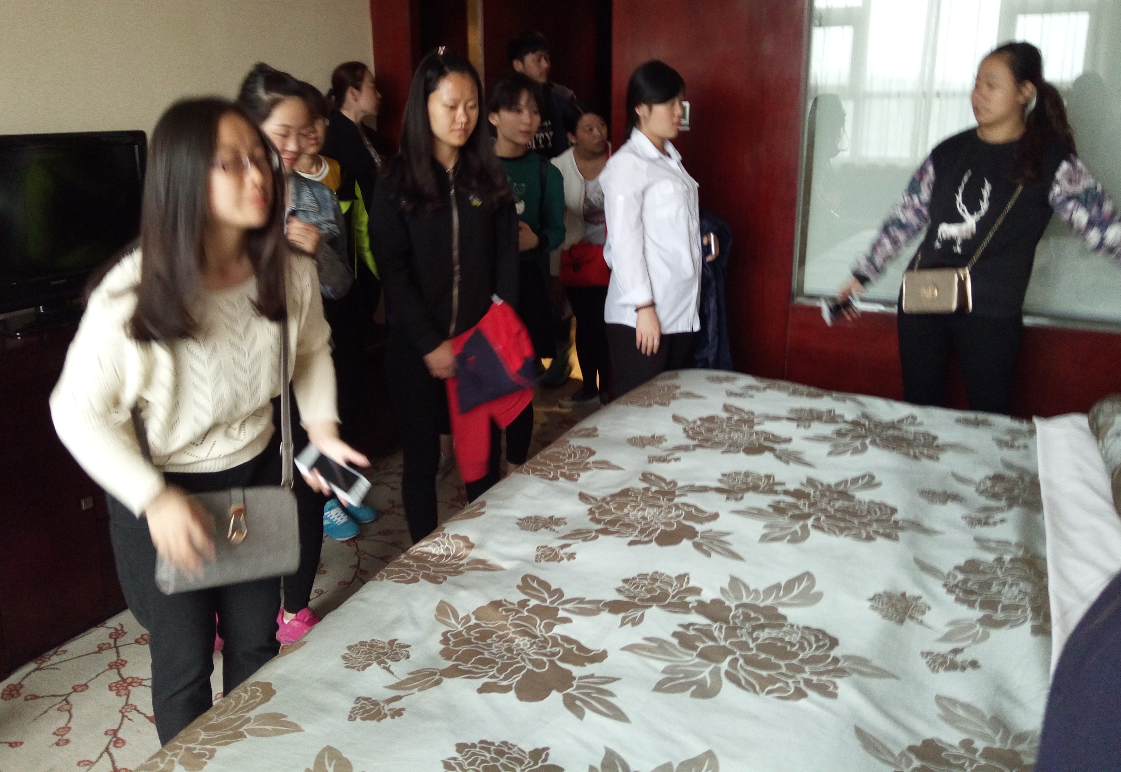 学生们参观大床房