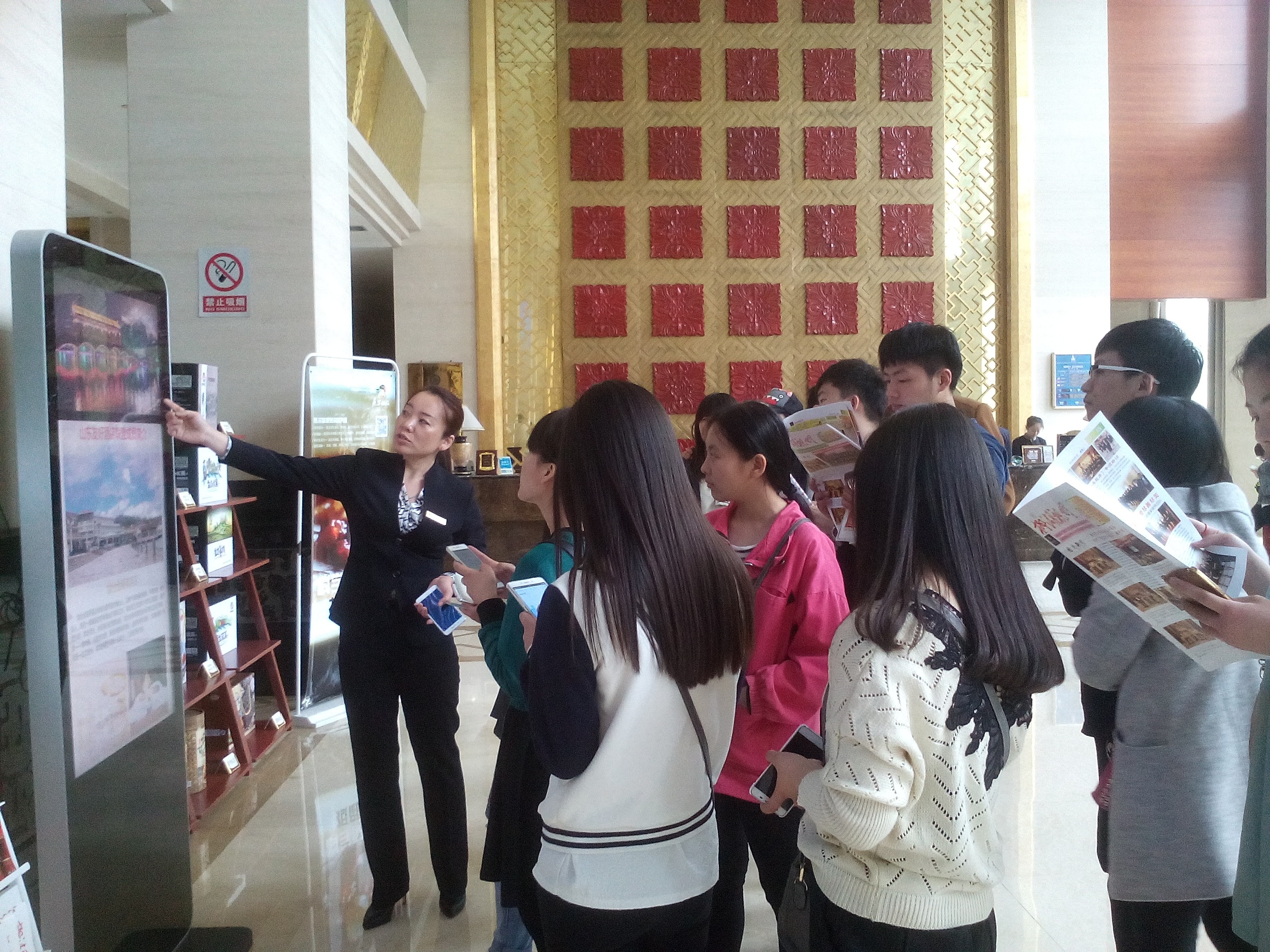 在前厅部,大堂经理为学生介绍了酒店的总体风格,经营理念,企业文化,经营特色等,并通过观看企业宣传片的方式展示了酒店的全貌。同时为每一位学生发放了柳湖书院报,让学生进一步感受酒店的企业文化及酒店的人文气息。
