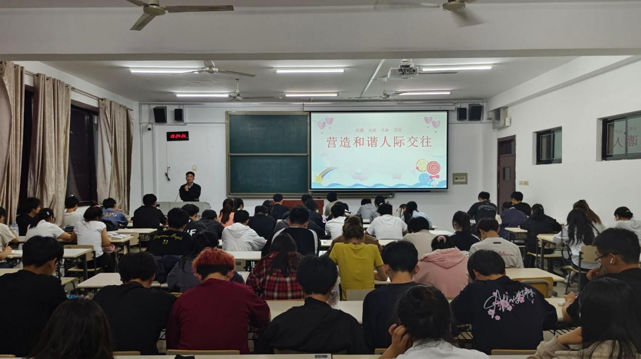 班会中,辅导员围绕人际交往的概念、常见困扰、能力提升方法三大板块展开系统讲解。结合宿舍作息冲突、集体活动意见分歧等贴近学生生活的典型案例,深入浅出地剖析了良好人际关系在个人成长发展中的重要意义。班会中设置了小组讨论环节,引导同学们结合自身经历,群策群力探讨解决人际关系难题的有效方法。
