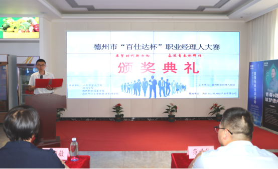 6月17日下午,德州市“百仕达杯”职业经理人大赛颁奖典礼在山东百仕达地标产业有限公司隆重举行。德州职业经理人协会秘书长葛艳敏,山东华宇工学院开云kaiyun官方网站副院长范世伟,山东百仕达地标产业有限公司营销总监李瑞兆,总经理助理满丽丽,营销副总监李登岳,以及三所高校的优秀指导老师代表出席了本次颁奖典礼。颁奖典礼由开云官网开云kaiyun官方网站团总支书记王群主持。