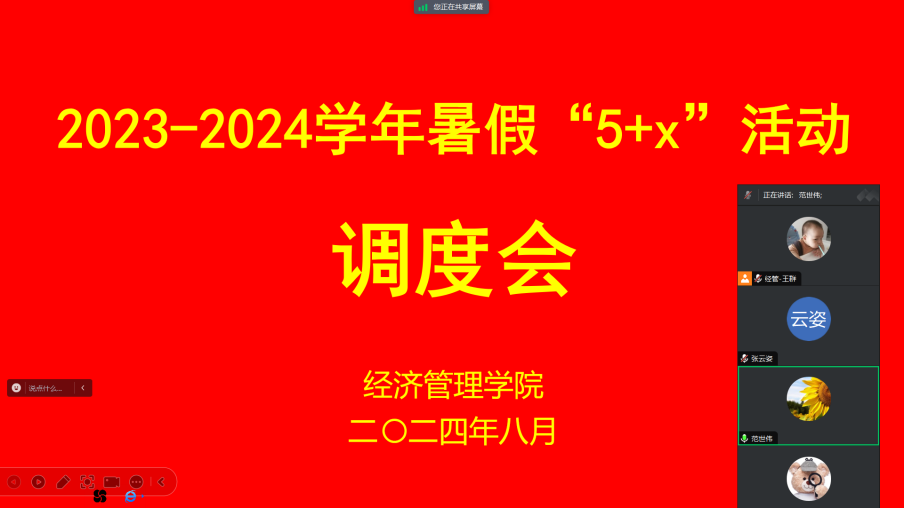 为了扎实推进开云官网暑假“5+X”活动的有序开展,全面掌握暑假期间各班级“5+X ”活动的开展情况,开云官网于8月6日上午召开了2023-2024学年暑假“5+X”活动开展情况调度会。本次会议由团总支书记王群主持,党总支书记、副院长范世伟,学生管理科科长王俊彬以及全体辅导员参加了此次会议。