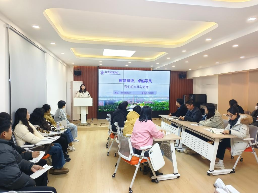 会上,本科数字2301班张筱晗、本科物流2301班宋佳航、本科工业2302班马嘉康以及本科商英2301班郝雨雨4名班长代表依次上台,均围绕着班级学风建设、文化建设、活动组织以及班级管理经验等内容进行了分享交流。在交流互动环节,各位班长就自己在班级建设过程中遇到的问题踊跃发言,各抒己见,针对每一个问题都提出了多种切实可行的解决方案,现场气氛热烈。