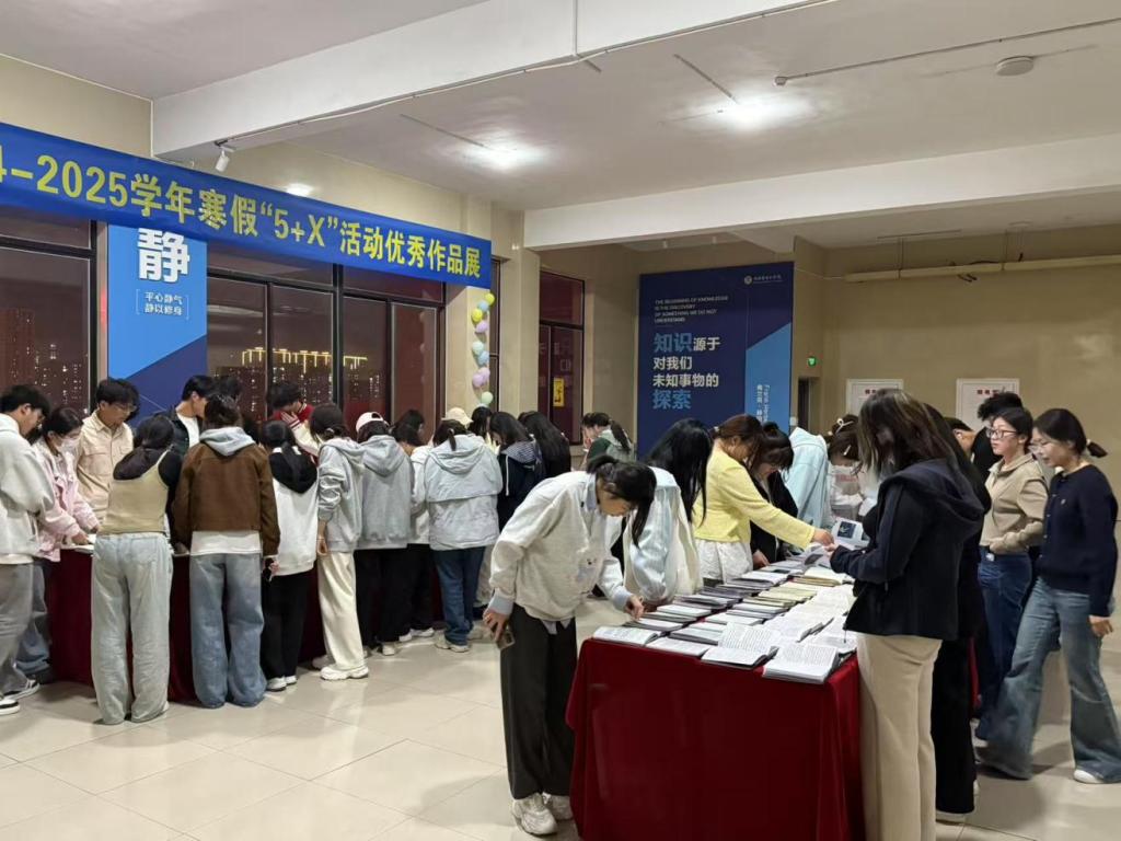 此次优秀作品展精心筹备,广泛动员,吸引了全院师生的参与观摩。展览现场,陈列了精美的拍摄作品、生动的活动记录、详实的实践报告,全方位、多角度地呈现了同学们在寒假期间丰富多彩的实践经历。寒假“5+X”活动引导学生在假期走出舒适区,深入社会多个领域,开展劳动体验、体育运动、社会调查等活动,积累了宝贵经验,培养了个人兴趣与专业特长,充分激发了学生的创新精神与实践能力。